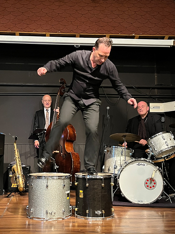 Bei freiem Eintritt brachte uns Martin Breinschmid diesmal wieder wie schon letztes Jahr als besonderes Zuckerl den Tapdancer Michael Fischer alias „Astaire La Vista“ mit, der zu den Swing-Klängen der Band für uns gekonnt seine Tanzschritte aufs Parkett zauberte.