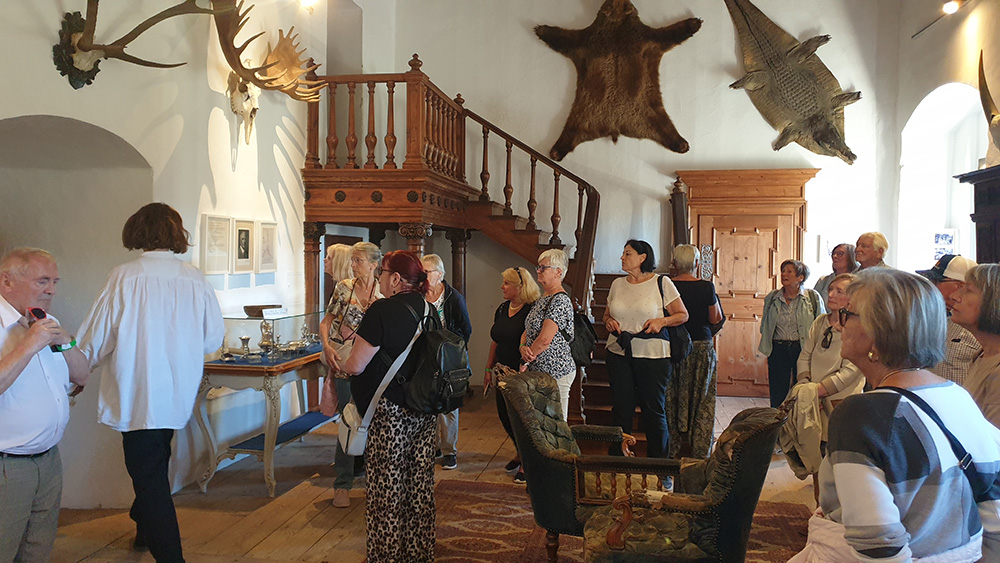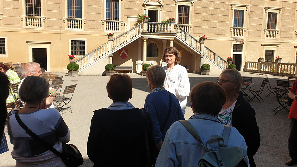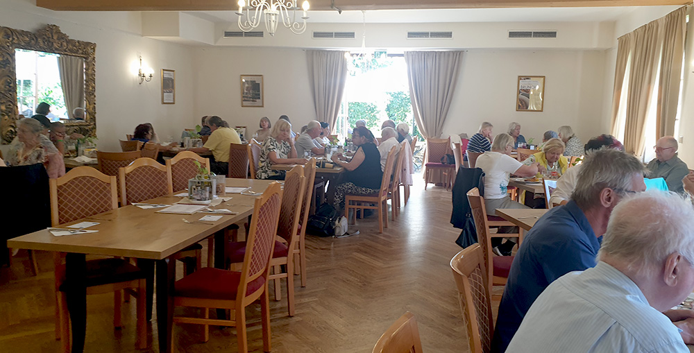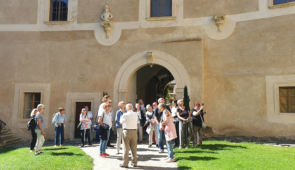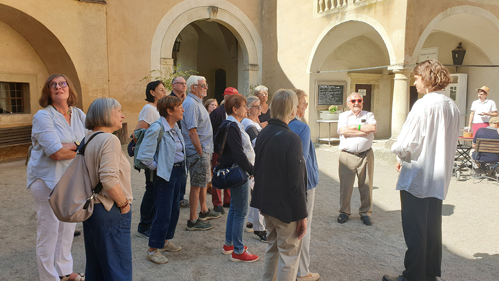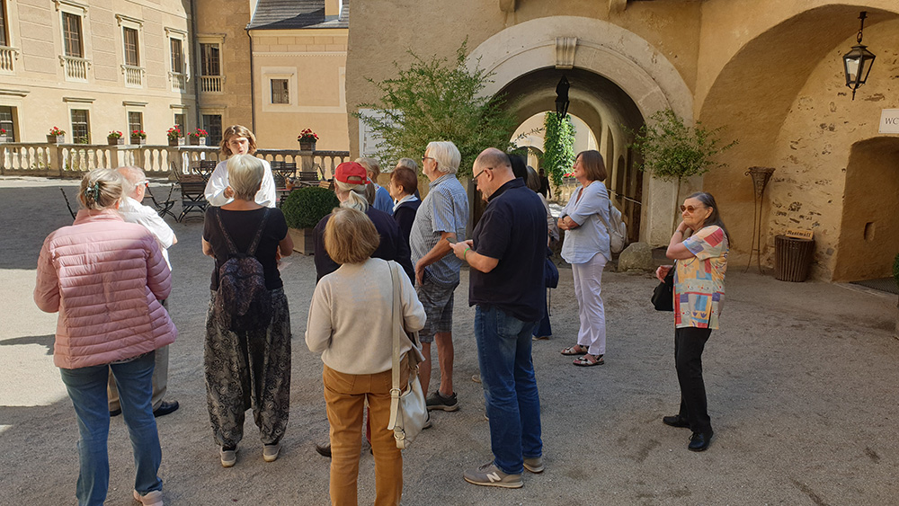 Am 3. September 2025 fand wieder ein Ausflug statt. Bei bestem Wetter kamen 52 Personen (ursprünglich waren 59 Personen angemeldet) pünktlich zu unserem Treffpunkt beim ARBÖ in der Wehlistraße 362 – diesmal waren wir mit einem Stockautobus unterwegs.Kurz vor 11 Uhr kamen wir bei der Rosenburg an. Zur Führung wurden wir in zwei Gruppen aufgeteilt. Nach sehr ausführlichen Erklärungen über die Burg ging es danach zum Mittagessen in den Schlossgasthof Rosenburg.