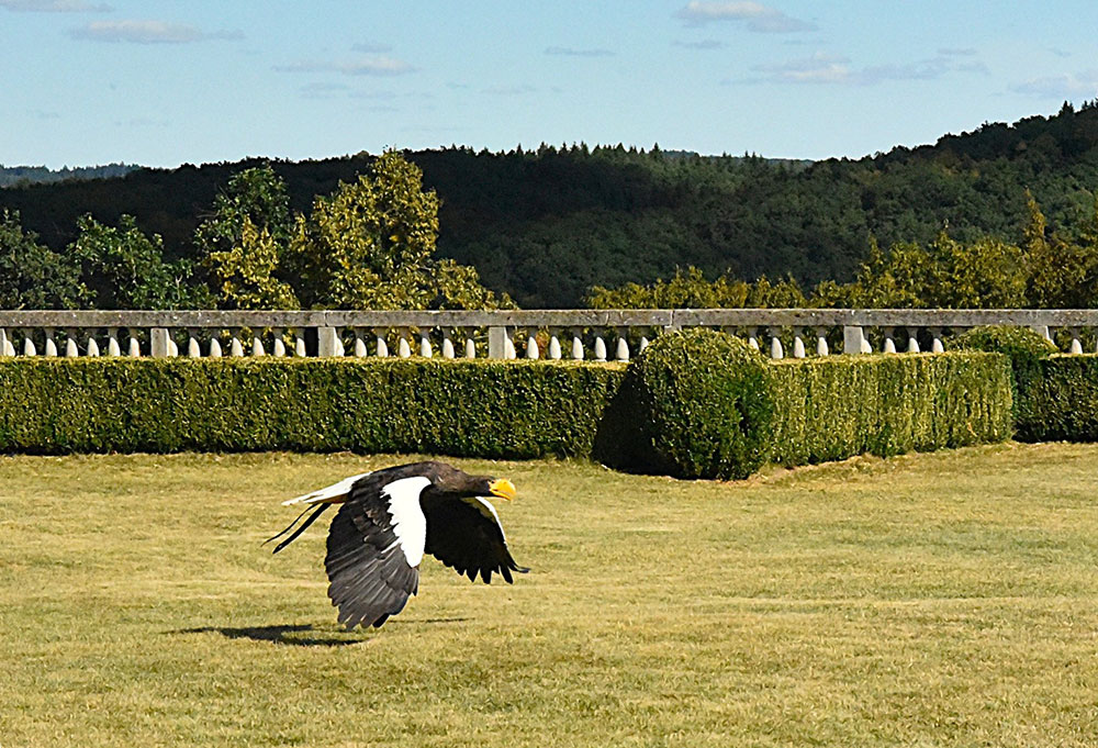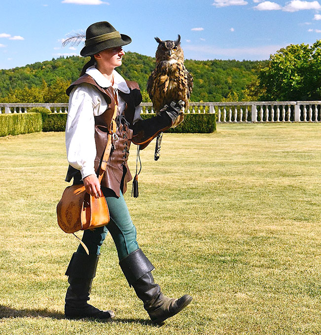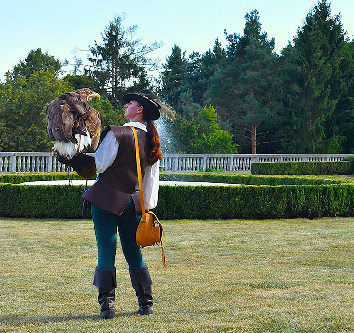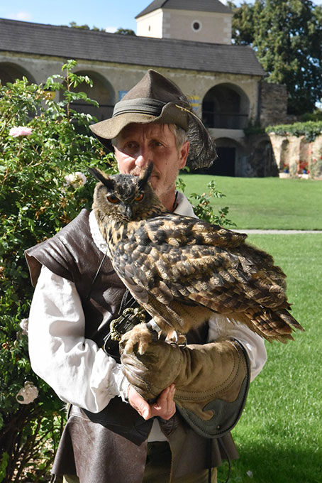 Um 15 Uhr begann dann die Historische Falknerei zu Pferd. Nachdem bei einigen Personen fast ein Scheitel gezogen wurde – so tief flogen die Greifvögel – fuhren wir weiter zu unserem „Stammheurigen“.