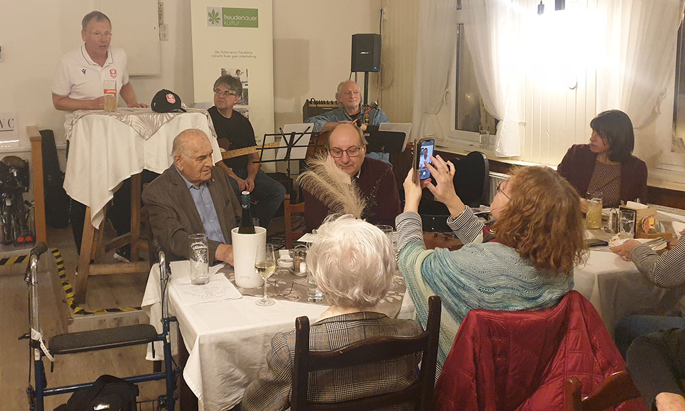 Der Wiener Journalist und Autor Uwe Mauch ist seit Jahren ein großer Fan des Kulturvereins Freudenau und seiner Menschen. Wieder einmal las er im Schutzhaus Heustadlwasser, dieses Mal aus seiner jüngsten Textsammlung. Es geht darin um einen neuen Trend, um Leidenschaft, um soziale Kompetenz, um Empathie, Freundschaft und Fitness im Alter. Es GEHT um Walking Football, eine neue Spielvariante, die Gelenke schont und dem Herzerl guttut.