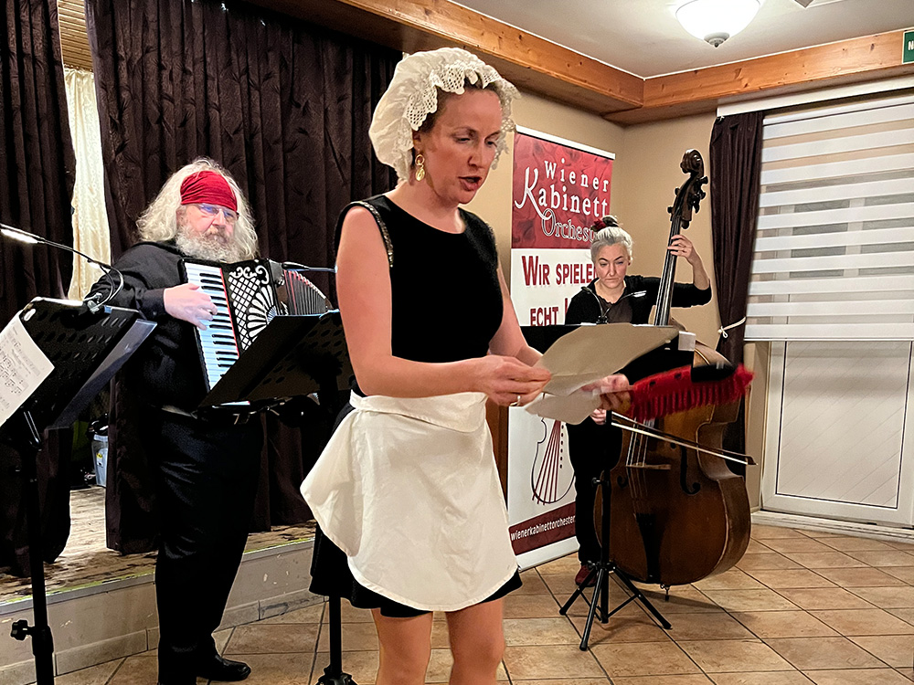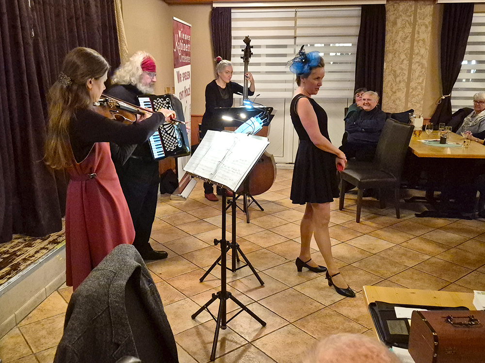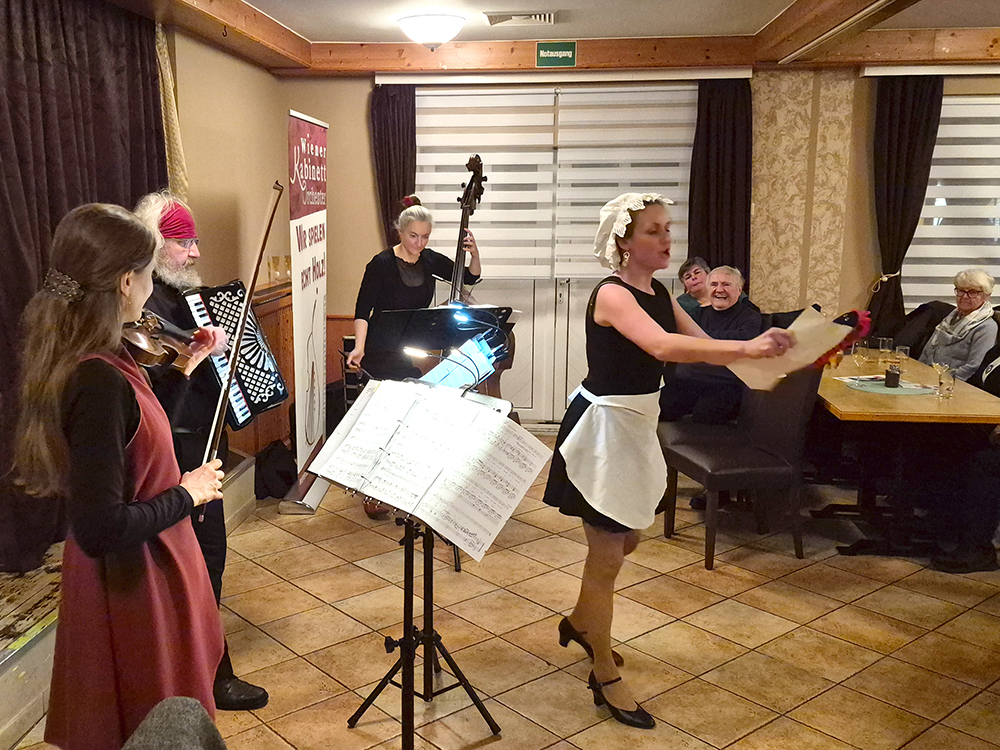 Bei angenehmer Raumtemperatur spielte das „Kabinettorchester“ für uns ein sehr gut gewähltes Repertoire an Wiener Liedern und anderen Ohrwürmern. Immer wieder ging es recht schwungvoll zu und bei so manchen Liedern wurde gerne mitgesungen.