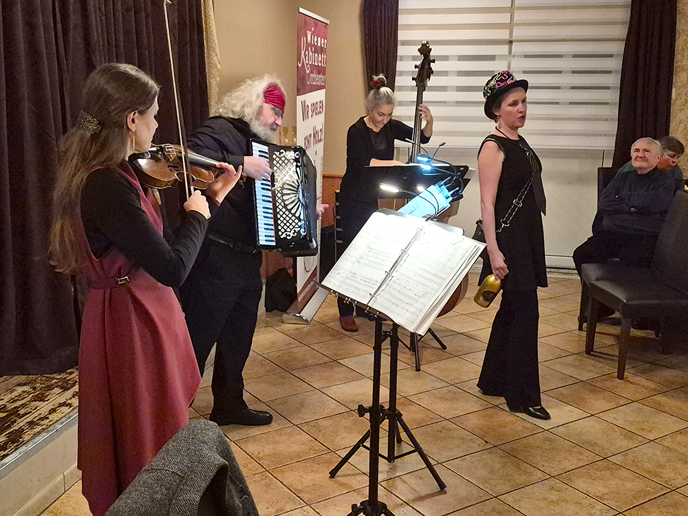 Bei angenehmer Raumtemperatur spielte das „Kabinettorchester“ für uns ein sehr gut gewähltes Repertoire an Wiener Liedern und anderen Ohrwürmern. Immer wieder ging es recht schwungvoll zu und bei so manchen Liedern wurde gerne mitgesungen.
